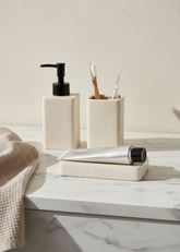 Bring understated luxury to your bathroom with the Slate Bathroom Set - Beige. Crafted from high-quality ceramic, this coordinated set offers a refined, modern aesthetic inspired by natural stone textures. Designed to elevate everyday routines, it blends durability with a calm, spa-like elegance that suits both contemporary and classic bathrooms.