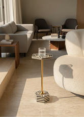 Crafted to be both functional and decorative, the Cairo Inlay Drink Table is perfectly sized to hold drinks, books, or accent décor beside a sofa, armchair, or bed. The finely executed inlay work creates visual depth and texture, while the balanced proportions ensure versatility across modern and classic settings.