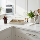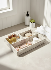 Elevate your organization game with the Indo Latte Organizer Tray, crafted from sturdy MDF and faux leather, finished in a sophisticated marble effect that blends light beige and brown tones. Designed with three spacious slots, this tray offers a stylish yet functional solution for tidying up your space. Whether placed in your bathroom, on the dining table, or atop your dresser, it adds a touch of elegance while keeping everyday essentials neatly arranged.