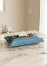 Introducing our Blue & Brown Tissue Box Cover - a stylish and practical addition to your home decor! Crafted from high-quality materials, this tissue box cover is designed to add a touch of elegance to any room. The cover easily fits over standard size tissue boxes, providing a seamless and polished look. It also helps to keep your tissues organized and easily accessible.