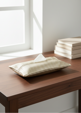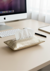 Introducing our Gold Tissue Box Cover - a stylish and practical addition to your home decor! Crafted from high-quality materials, this tissue box cover is designed to add a touch of elegance to any room. The cover easily fits over standard size tissue boxes, providing a seamless and polished look. It also helps to keep your tissues organized and easily accessible.