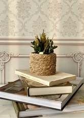 Add an organic, handcrafted touch to your interiors with the Artificial Jute Bonsai Pot. Thoughtfully designed to replicate the charm of a miniature bonsai, this piece features realistic foliage paired with a textured jute-wrapped pot for a warm, earthy appeal. Perfect for desks, shelves, or side tables, it brings a sense of calm greenery without the need for upkeep.