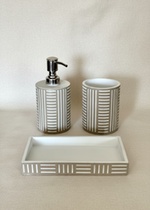Complete 3-Piece Set: Includes a soap dispenser, tumbler, and tray for a coordinated bathroom look.