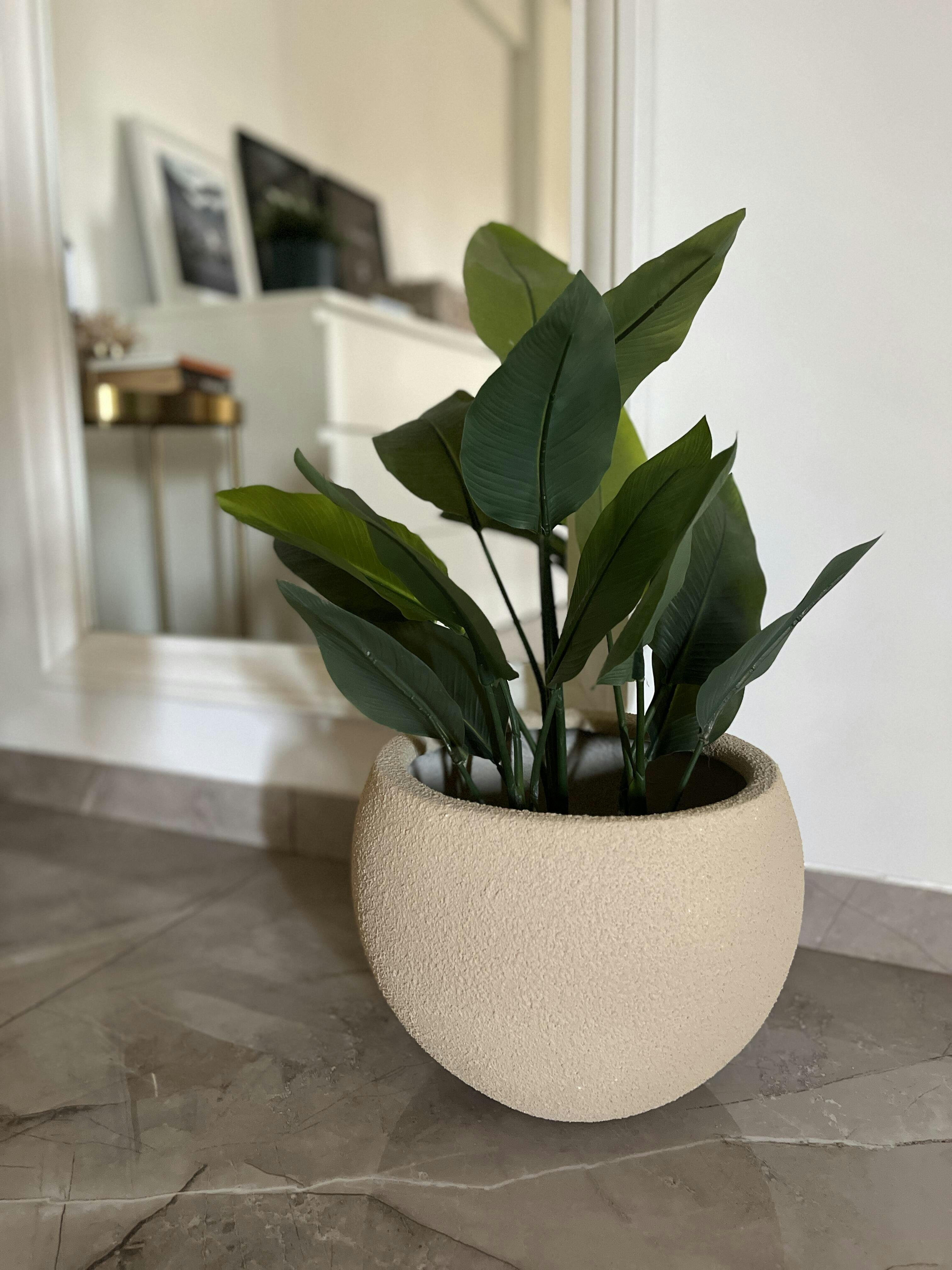 Durable Fiberglass Construction: Made from lightweight yet robust fiberglass, the Lithos Beige Planter is built to withstand the elements, ensuring long-lasting beauty both indoors and outdoors.