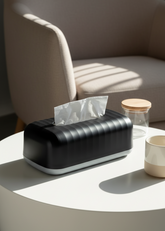 Elevate everyday essentials with the Museo Tissue Box, designed to bring a clean, premium aesthetic to your space. With its sleek black finish and refined form, this tissue box seamlessly blends into modern, minimalist, and luxe interiors. Crafted from high-quality plastic, it offers durability while maintaining a polished, sophisticated look ideal for both home and office settings.